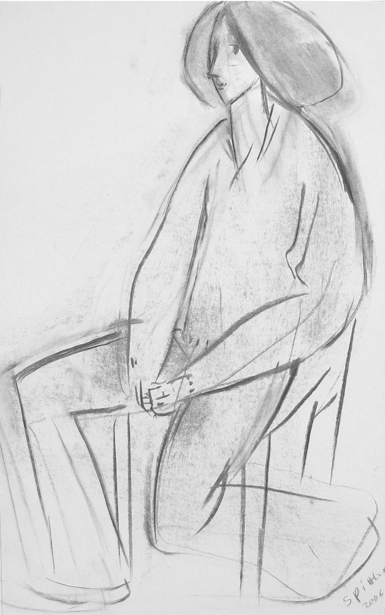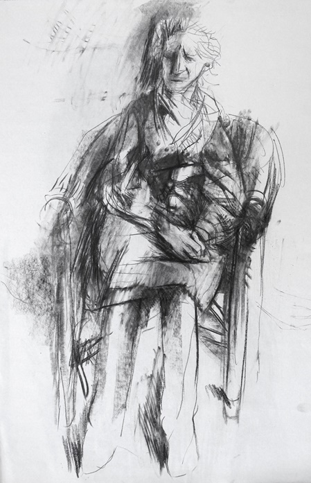 Wir sehen Zeichnungen, die offenbar unmittelbar vor dem Modell entstanden sind und solche, die in weiterer Bearbeitung verdichtet, im Ausdruck verstärkt und gewissermaßen zusammengefasst und verallgemeinert wurden. Dieser Weg vom porträthaften Skizzieren zur zeichnerischen Überarbeitung führt dann zur Malerei, indem die Zeichnungen in die malerische Sprache des Künstlers übersetzt werden.