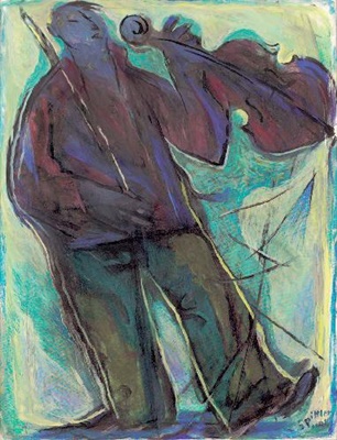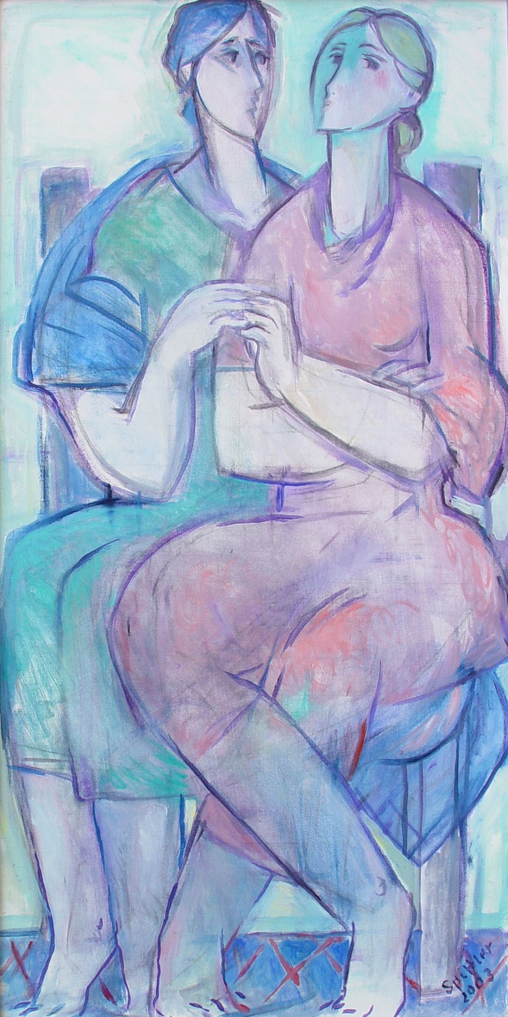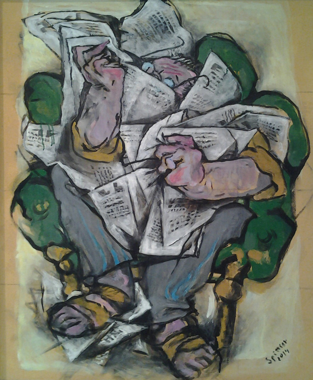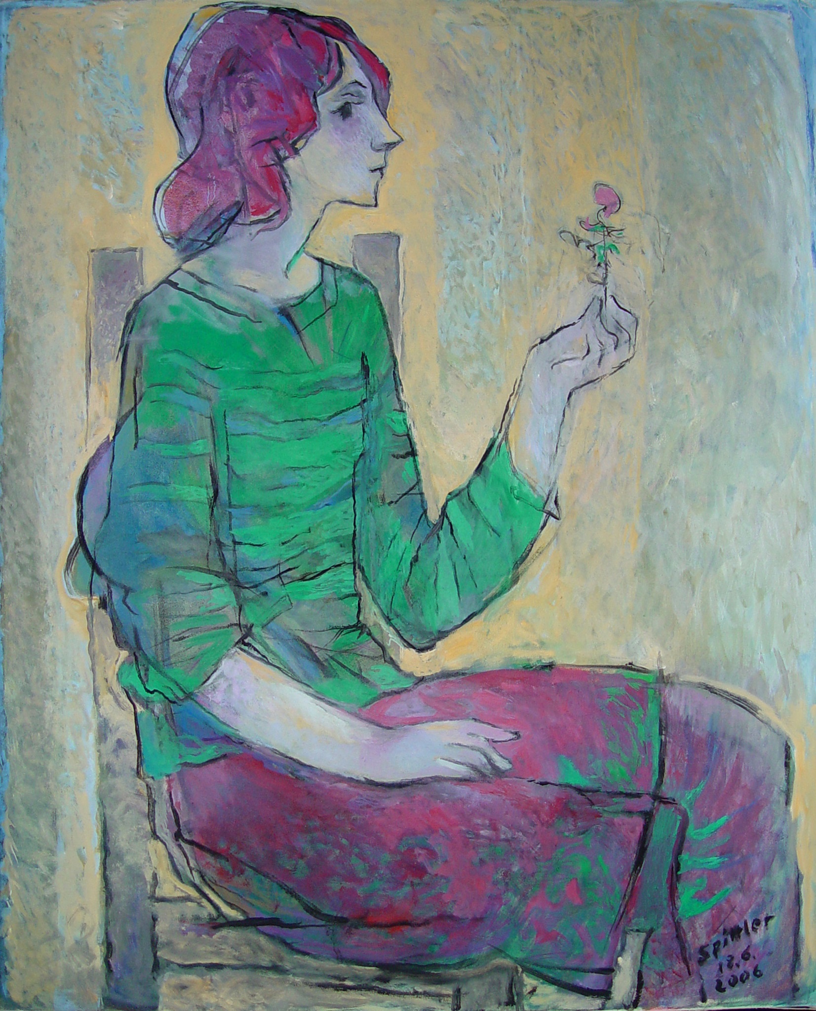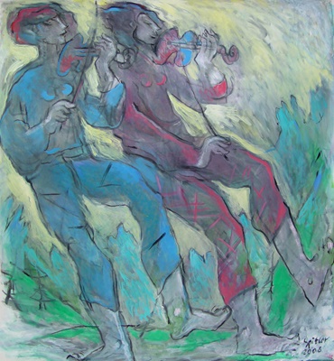 "In die Malerei ist nun die große Erfahrung des Zeichners und Malers eingeflossen, die Sicherheit in der Figur und die Fähigkeit, die Abstraktion und expressive Verformung zu einem Punkt zu bringen, der Porträthaftes und Allgemeines raffiniert in der Schwebe lässt."
