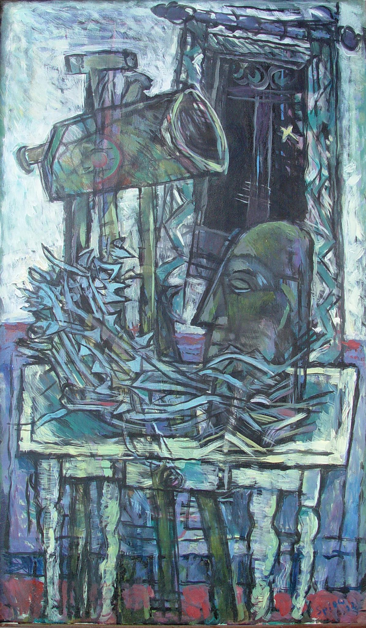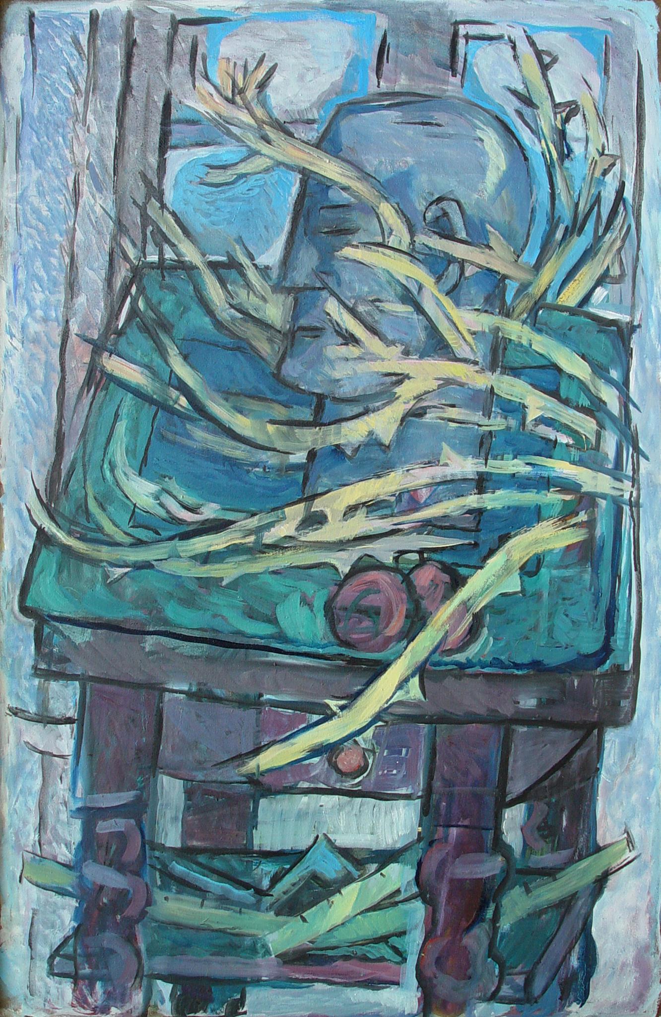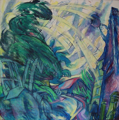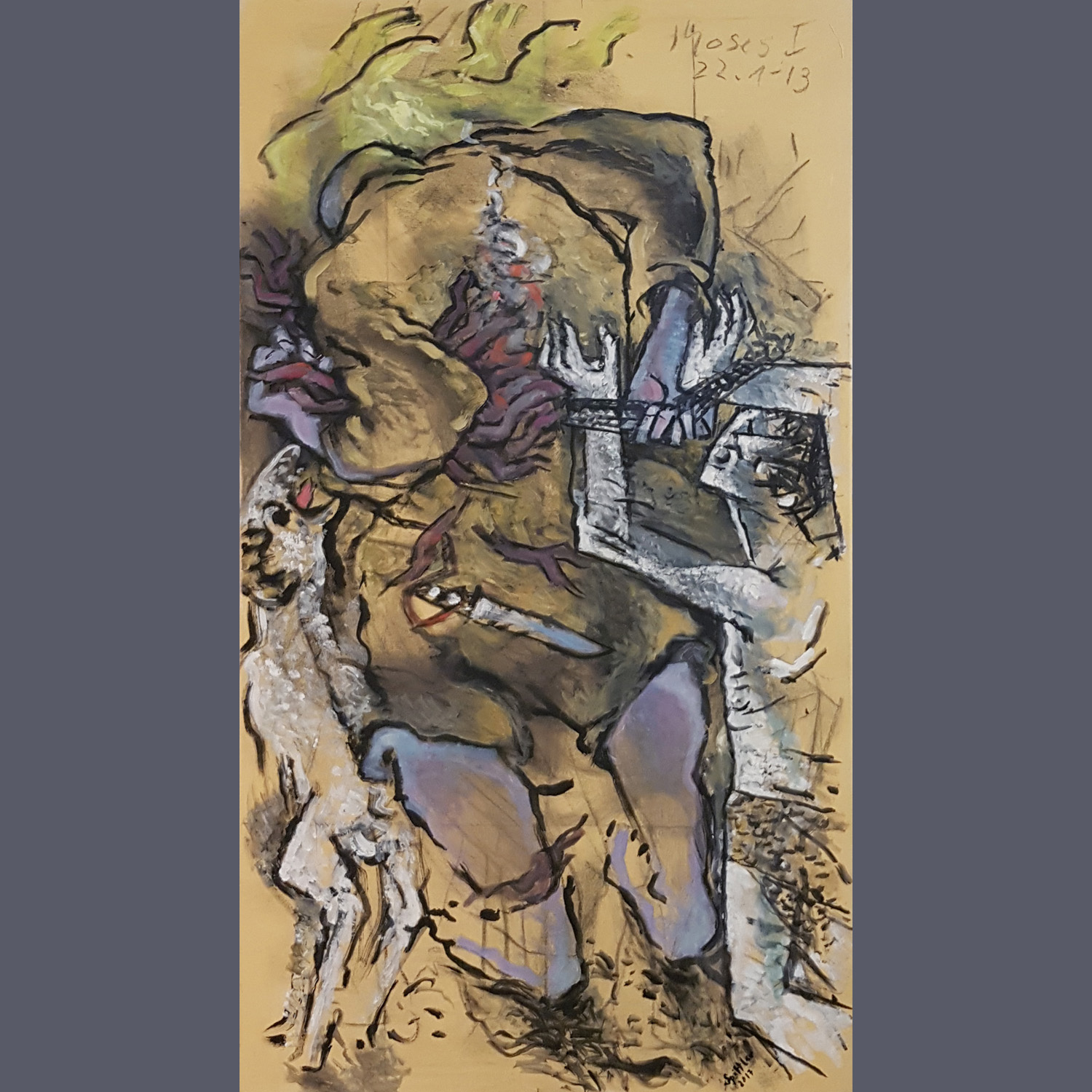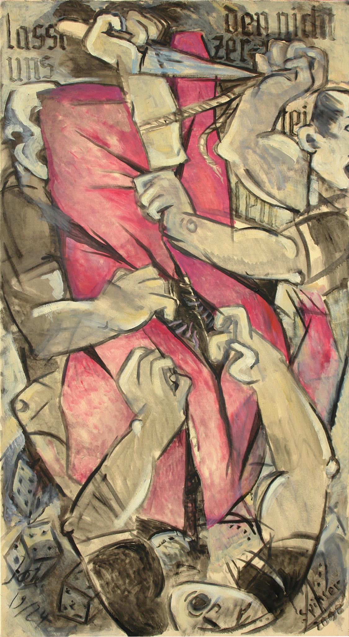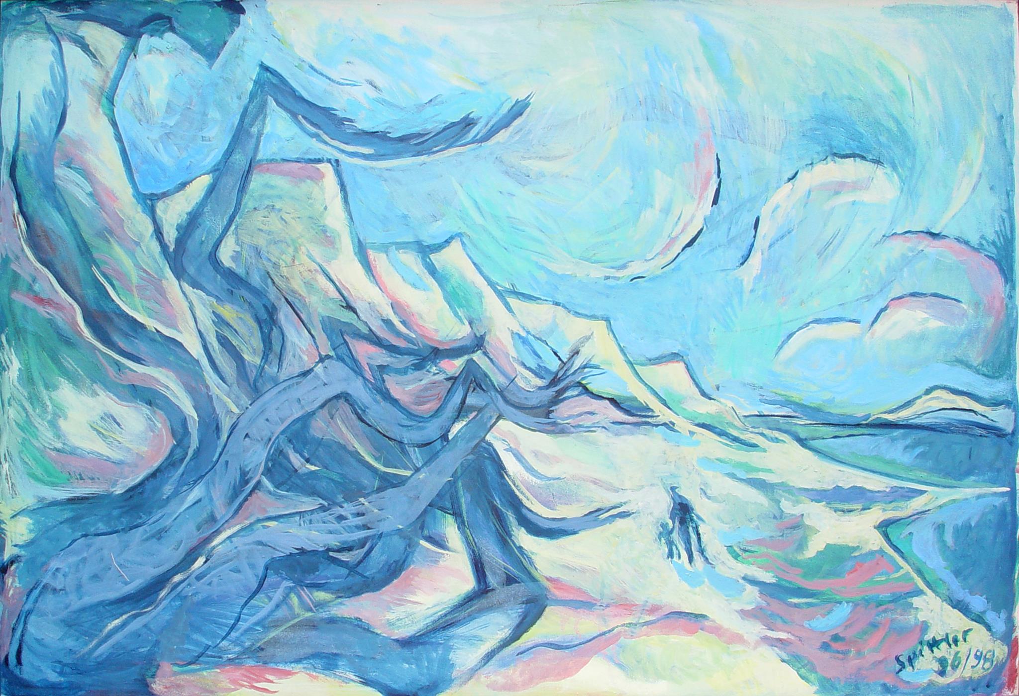 "Diese Gruppe der großformatigen Triptychen bringt eine Erweiterung der Bildsprache und des inhaltlichen Anspruchs hervor, indem teils verrätselt, teils offenbarend komplexe Inhalte mit bedeutsamen Metaphern zum Ausdruck gebracht werden."