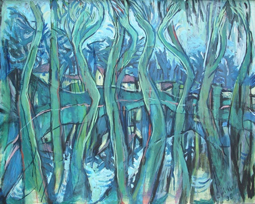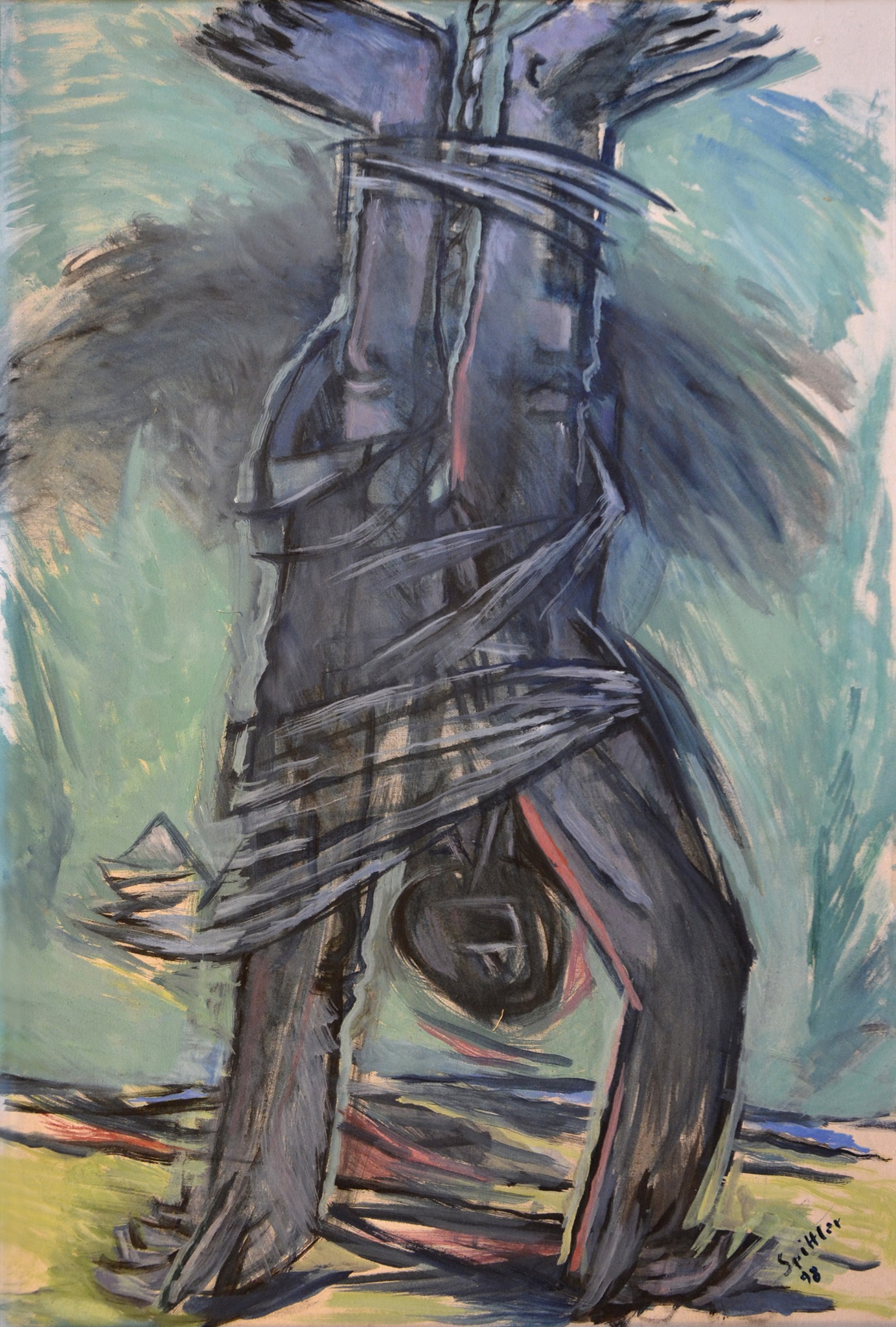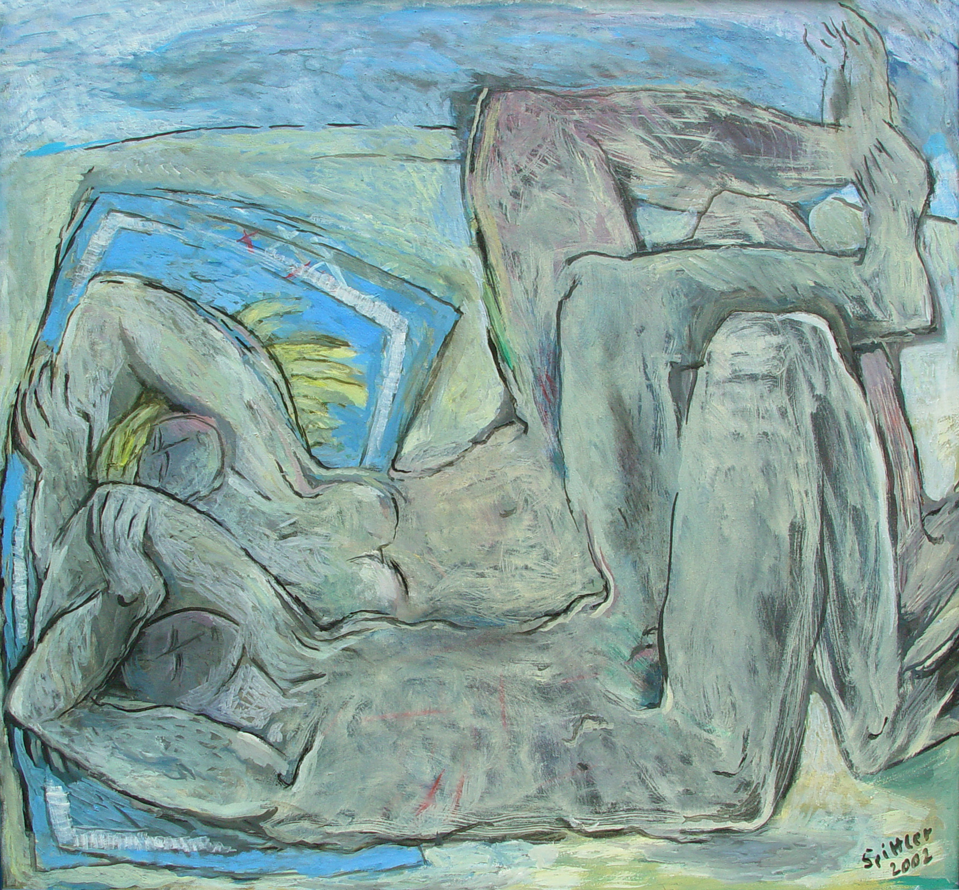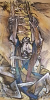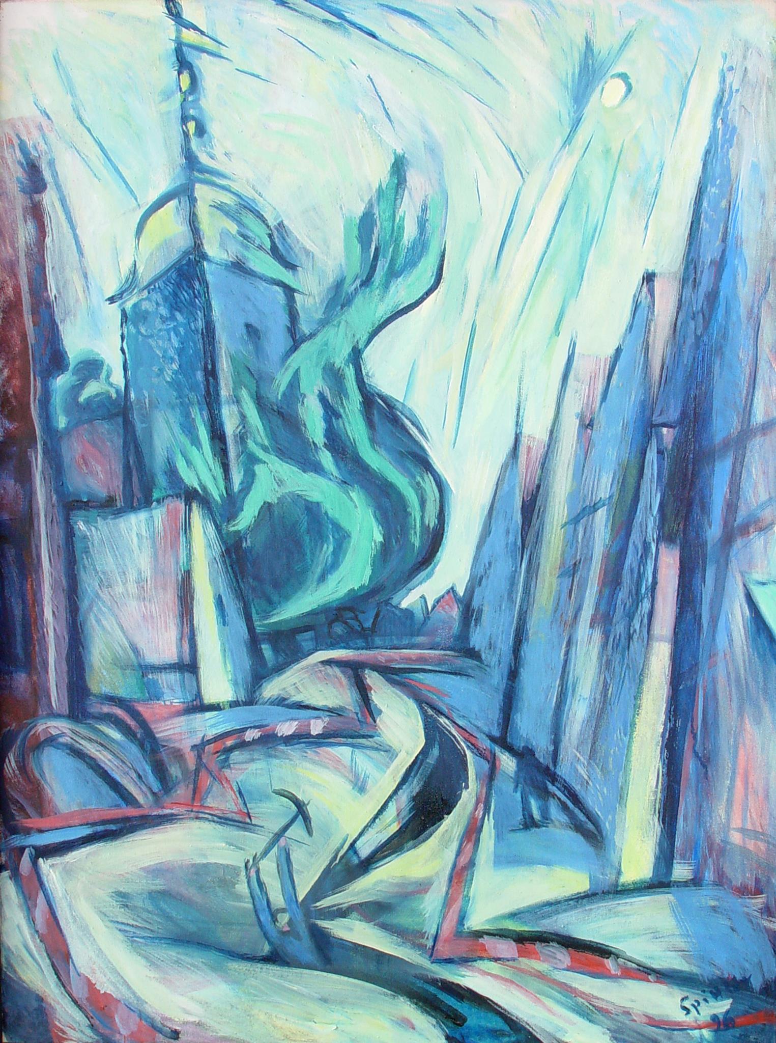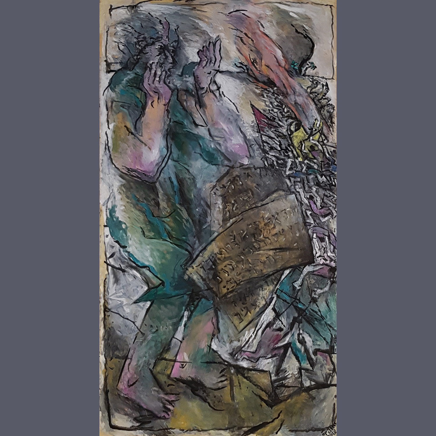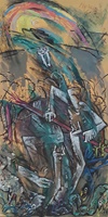 "Diese Gruppe der großformatigen Triptychen bringt eine Erweiterung der Bildsprache und des inhaltlichen Anspruchs hervor, indem teils verrätselt, teils offenbarend komplexe Inhalte mit bedeutsamen Metaphern zum Ausdruck gebracht werden."