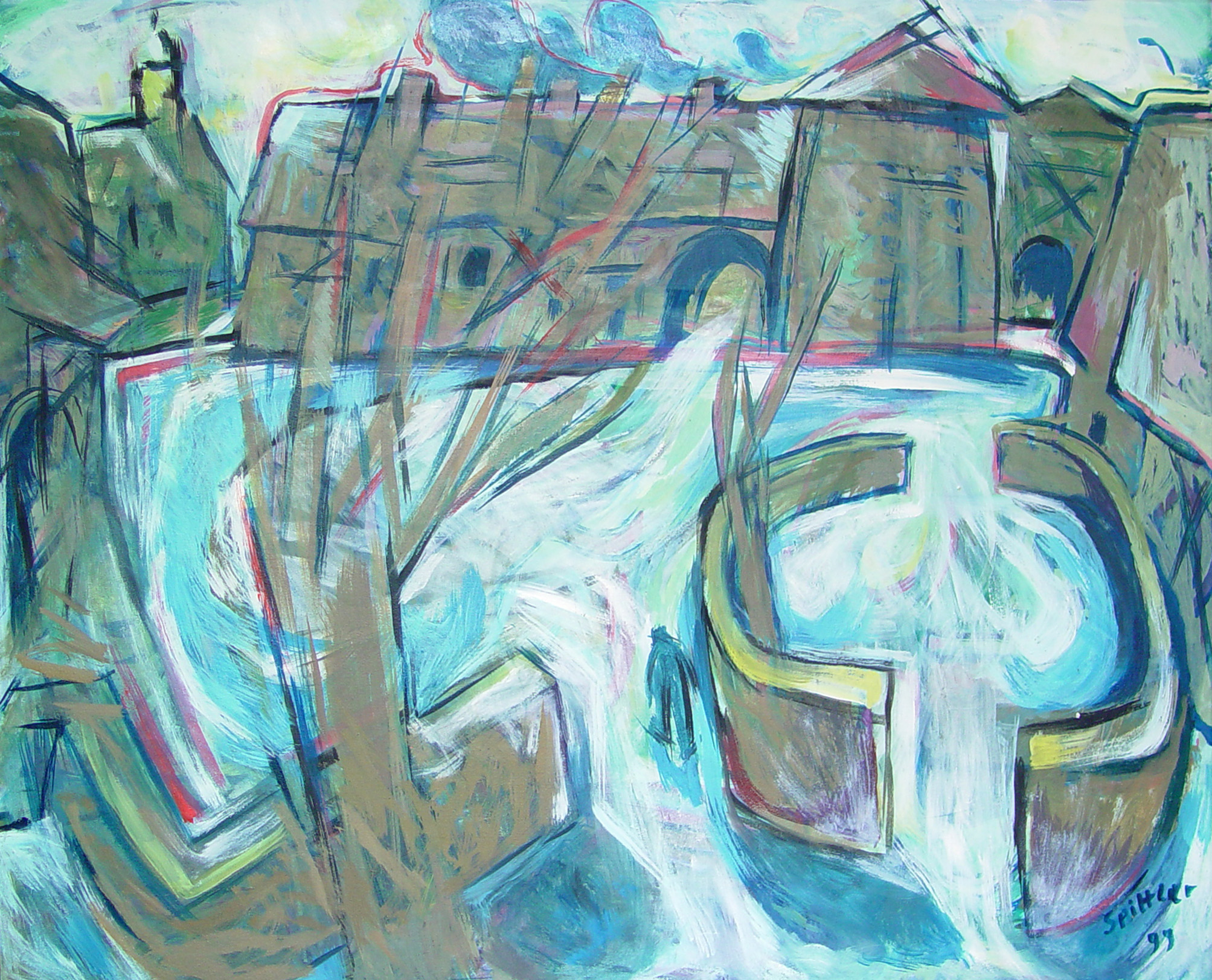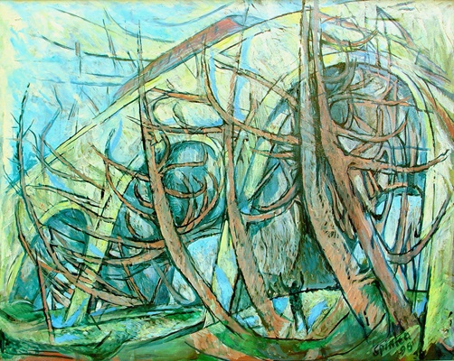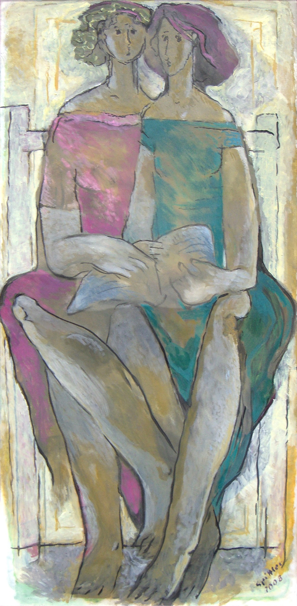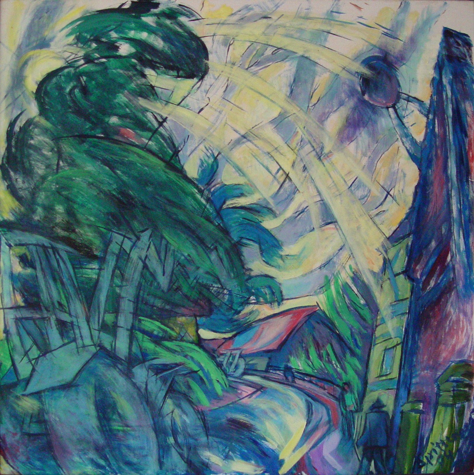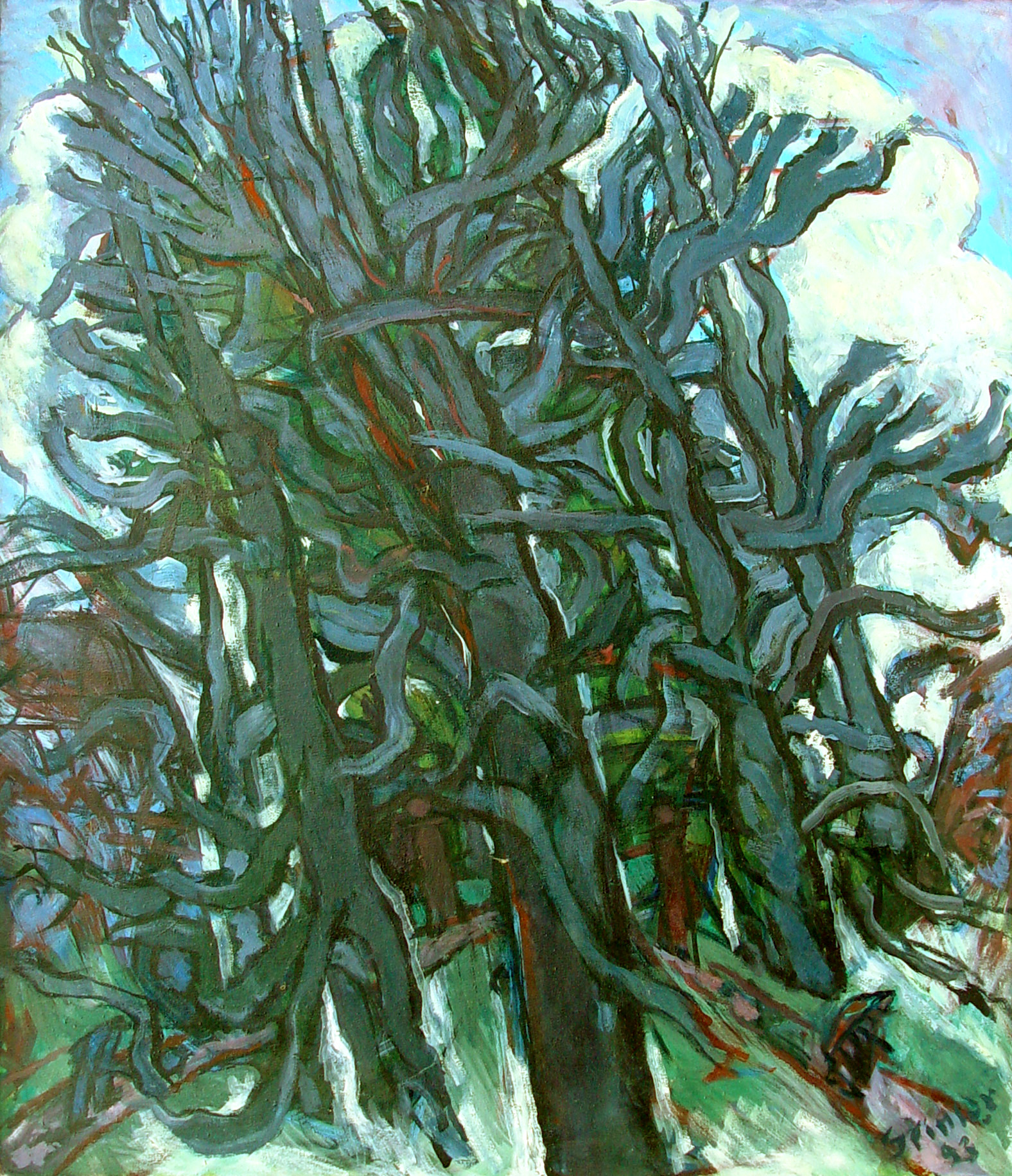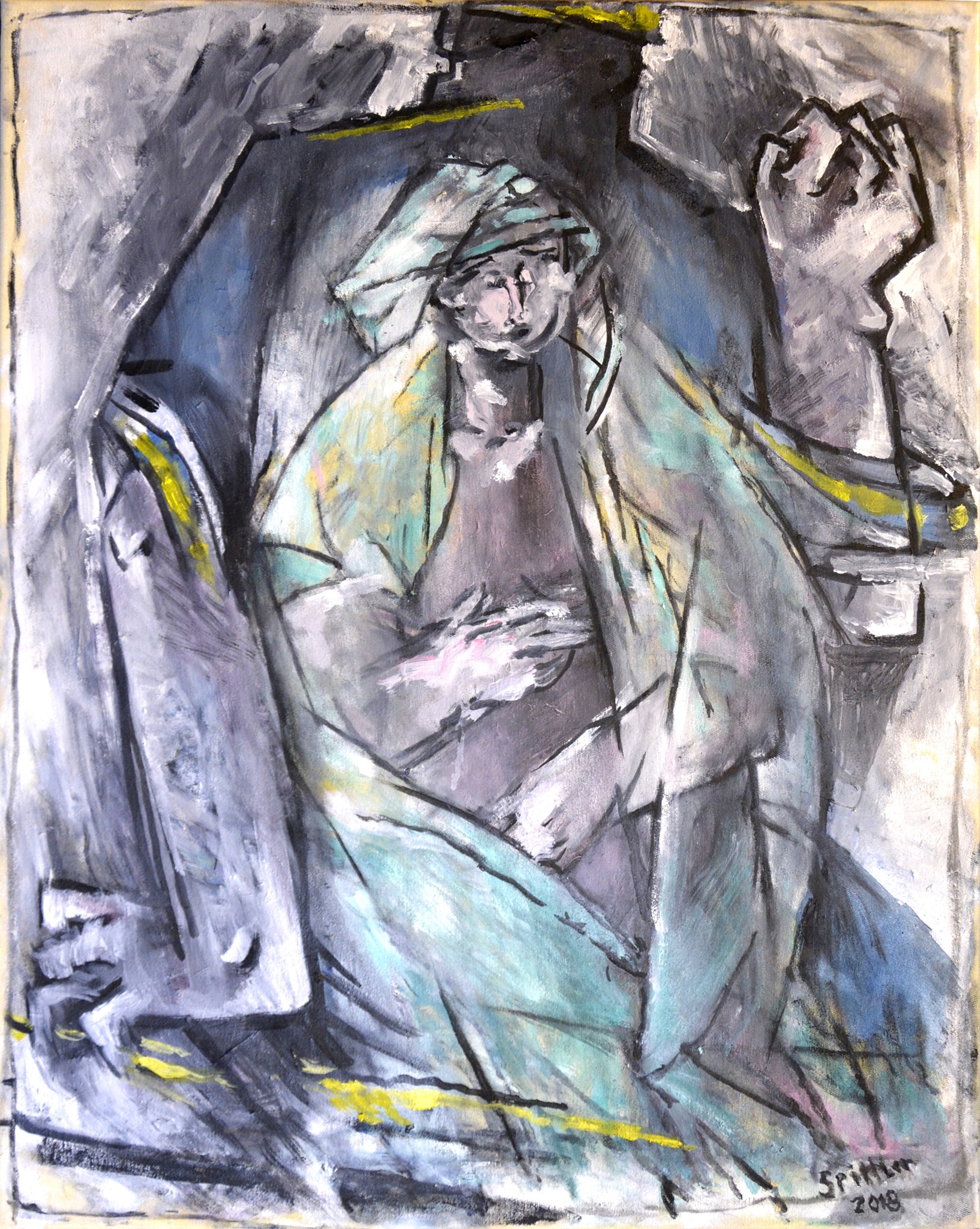 "Diese Gruppe der großformatigen Triptychen bringt eine Erweiterung der Bildsprache und des inhaltlichen Anspruchs hervor, indem teils verrätselt, teils offenbarend komplexe Inhalte mit bedeutsamen Metaphern zum Ausdruck gebracht werden."